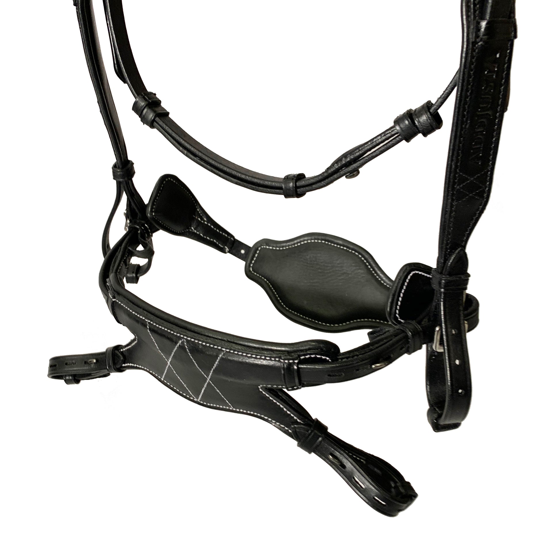 The nosebands are all designed to avoid pressure from sensitive nerves. With only one strap that holds both bit and noseband the look and feel is neat and tidy. If you prefer to keep a more traditional noseband function there is an optional anatomical and softly padded chin strap included.
