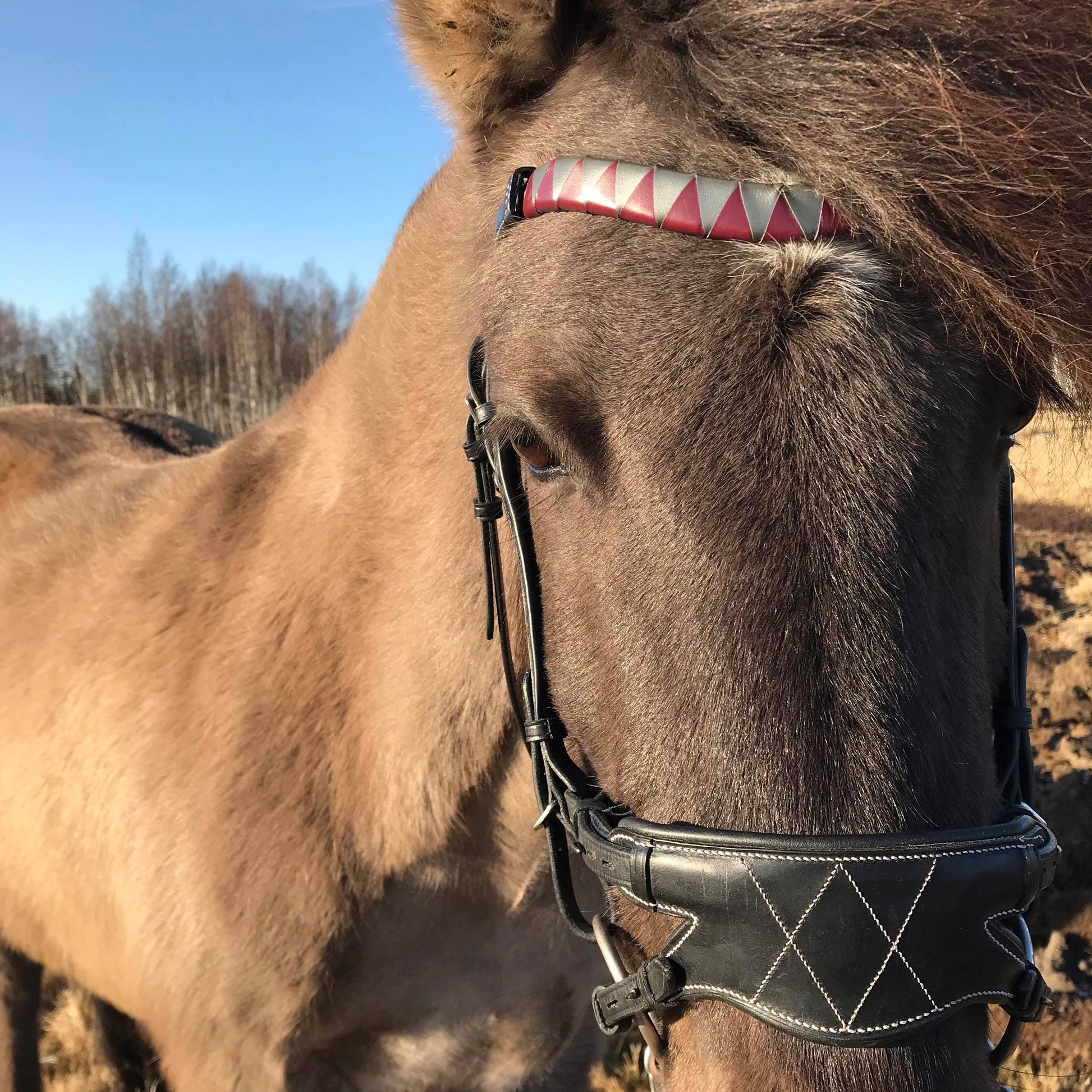A classic sharks tooth patterned browband. The browbands are curved to avoid unneccesary pressure on the sides. Only available in black leather sides for now.