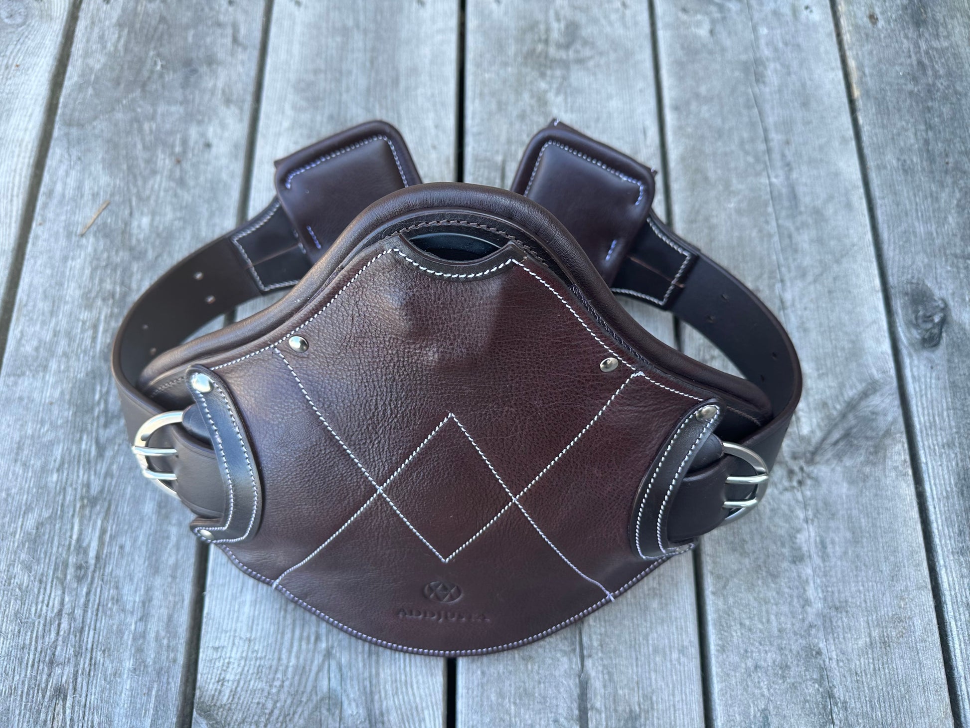 The elastic will also allow the chest to expand while breathing and jumping thus increasing the flow of oxygen for maximum performance at all times.The stud ensures excellent pressure distribution and comfort. It has extra soft padding and is covered with a very supple vegetable tanned leather.