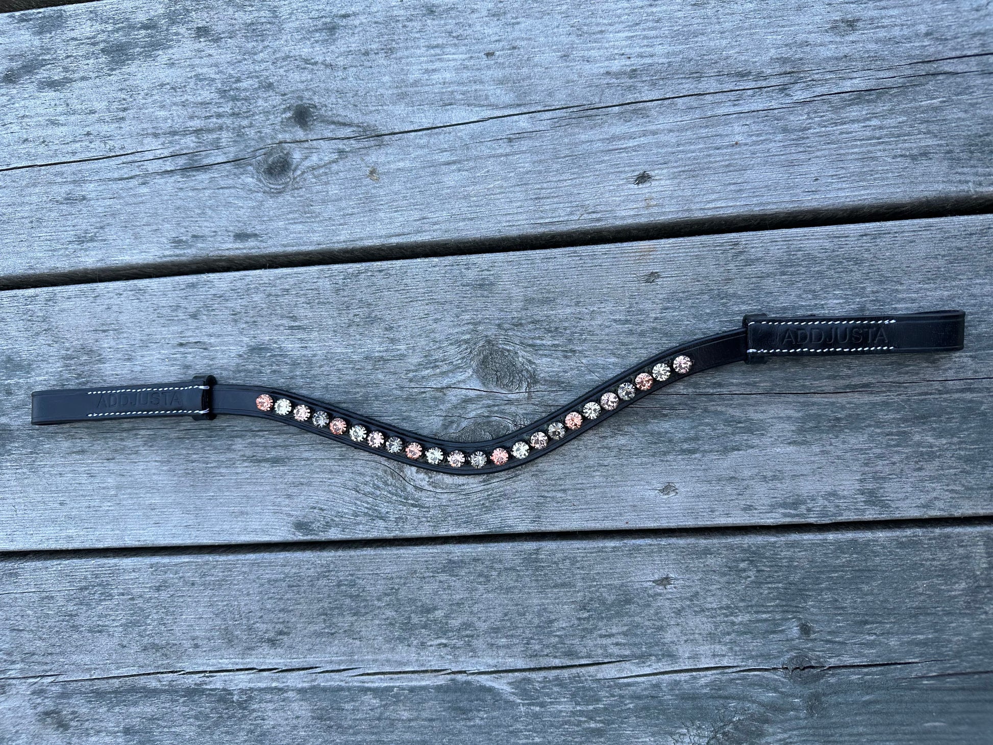 Adjustable browband with Preciosa crystals. Adjustable from COB to XFULL, but fits most ponies as well. A perfect match to our BellA saddle pad in pink!